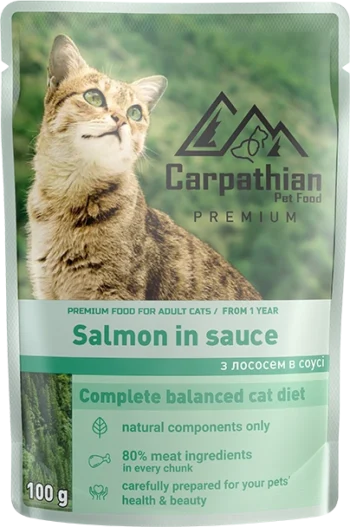 Вологий корм ТМ Carpathian Pet Food лосось у соусі 100г х 24шт