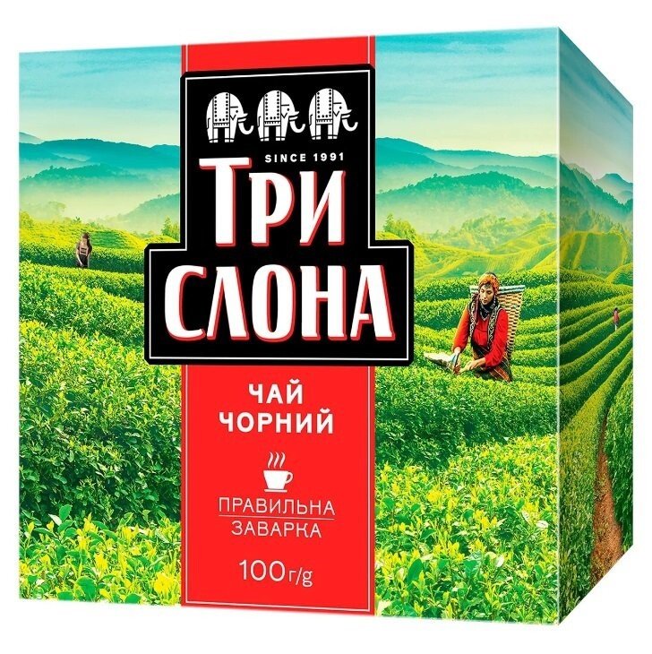 Три Слона Класичний – натуральний чорний чай без добавок, випущений у пакетованій формі для спрощення заварювання та зберігання. Цієї коробки вистачить на цілу сотню чашок міцного та ароматного напою.